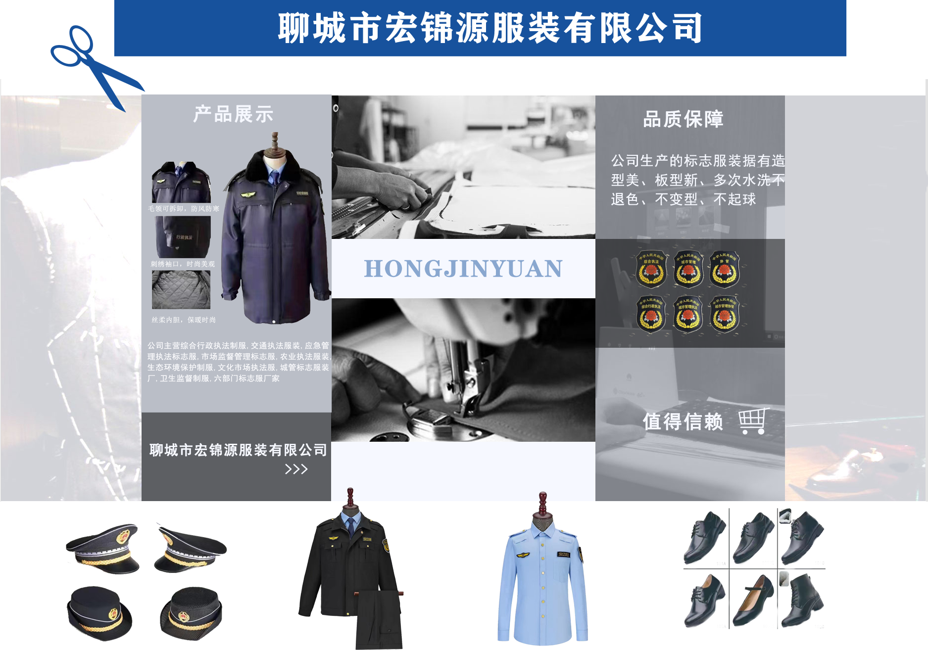 聊城市宏錦源服裝有限公司位于江北水城—山東聊城,地理位置優(yōu)越,交通便利。公司主營綜合行政執(zhí)法制服,交通執(zhí)法服裝,應(yīng)急管理執(zhí)法標(biāo)志服,市場監(jiān)督管理標(biāo)志服,農(nóng)業(yè)執(zhí)法服裝,生態(tài)環(huán)境保護(hù)制服,文化市場執(zhí)法服,城管標(biāo)志服裝廠,衛(wèi)生監(jiān)督制服,六部門標(biāo)志服廠家等,值得信賴! 公司生產(chǎn)的標(biāo)志服裝據(jù)有造型美、板型新、多次水洗不退色、不變型、不起泡。 “認(rèn)真辦事,踏實做人”是宏錦源的企業(yè)精神,我們的宗旨是:“用服務(wù)與真誠來換取你的信任與支持,互惠互利,共創(chuàng)雙贏!”我公司愿與國內(nèi)外各界同仁志士竭誠合作,共創(chuàng)未來企業(yè)目標(biāo):在已選定的服飾領(lǐng)域中,成為行業(yè)的卓越者?! 〗?jīng)營理念:追求產(chǎn)品卓越,為用戶提供完美、高效的服務(wù)。...