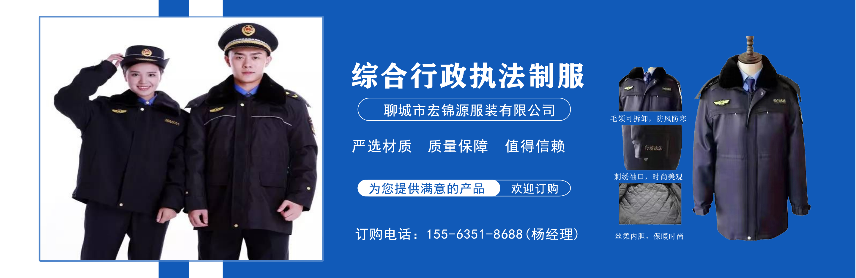聊城市宏錦源服裝有限公司位于江北水城—山東聊城,地理位置優(yōu)越,交通便利。公司主營綜合行政執(zhí)法制服,交通執(zhí)法服裝,應(yīng)急管理執(zhí)法標(biāo)志服,市場監(jiān)督管理標(biāo)志服,農(nóng)業(yè)執(zhí)法服裝,生態(tài)環(huán)境保護(hù)制服,文化市場執(zhí)法服,城管標(biāo)志服裝廠,衛(wèi)生監(jiān)督制服,六部門標(biāo)志服廠家等,值得信賴! 公司生產(chǎn)的標(biāo)志服裝據(jù)有造型美、板型新、多次水洗不退色、不變型、不起泡。 “認(rèn)真辦事,踏實做人”是宏錦源的企業(yè)精神,我們的宗旨是:“用服務(wù)與真誠來換取你的信任與支持,互惠互利,共創(chuàng)雙贏!”我公司愿與國內(nèi)外各界同仁志士竭誠合作,共創(chuàng)未來企業(yè)目標(biāo):在已選定的服飾領(lǐng)域中,成為行業(yè)的卓越者?! 〗?jīng)營理念:追求產(chǎn)品卓越,為用戶提供完美、高效的服務(wù)。...
